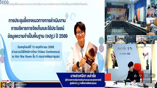 กรมการพัฒนาชุมชน จัดการประชุมชี้แจงแนวทางการดำเนินงานการบริหารการจัดเก็บข้อมูลความจำเป็นพื้นฐาน (จปฐ.) ประจำปี 2569 ผ่านระบบวีดิทัศน์ทางไกล (Video Conference) และ ทีวี พช. โดยมี นางสาวศนิชา เหล่าชัย ผู้อำนวยการกลุ่มงานประสานแผนและยุทธศาสตร์ศูนย์สารสนเทศเพื่อการพัฒนาชุมชน เป็นประธานเปิดการประชุมฯ