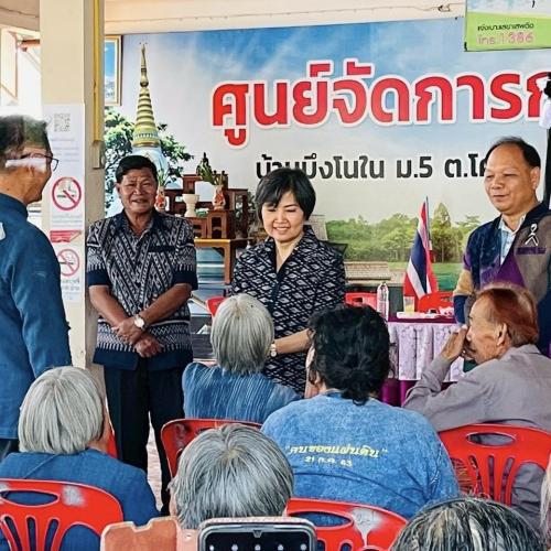 วันที่ 12 มีนาคม 2569 ณ ศูนย์จัดการกองทุนชุมชนบ้านบึงโนใน หมู่ที่ 5 ตำบลโคกสี อำเภอสว่างแดนดิน จังหวัดสกลนคร นางจุรีรัตน์ เทพอาสน์ ที่ปรึกษาผู้บริหารระดับสูง บริษัท ไทยเบฟเวอเรจ จำกัด (มหาชน) และนายสมาน พั่วโพธิ์ พร้อมคณะ ลงพื้นที่ติดตามและขับเคลื่อนโครงการ “ด้วยจงรักและภักดี” ซึ่งมุ่งส่งเสริมการพัฒนาชุมชนอย่างยั่งยืน ผ่านเครือข่ายวิสาหกิจเพื่อสังคม ภายใต้แนวคิด “สร้าง เสริม ร่วมกัน” โดยบูรณาการความร่วมมือจาก 5 ภาคส่วน ได้แก่ ภาครัฐ ภาควิชาการ ภาคเอกชน ภาคประชาสังคม และภาคประชาชน กลุ่มเป้าหมายประกอบด้วยกลุ่ม/องค์กร ดังนี้